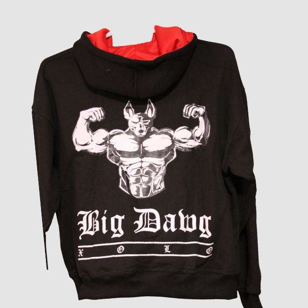 เสื้อฮู้ดสีดำ Big Dawg Xolo รุ่น Red Edition พร้อมซิป ดีไซน์ลายพิมพ์สกรีนแบบเรียบ ผ้าถัก มีไซส์ XL/XXS