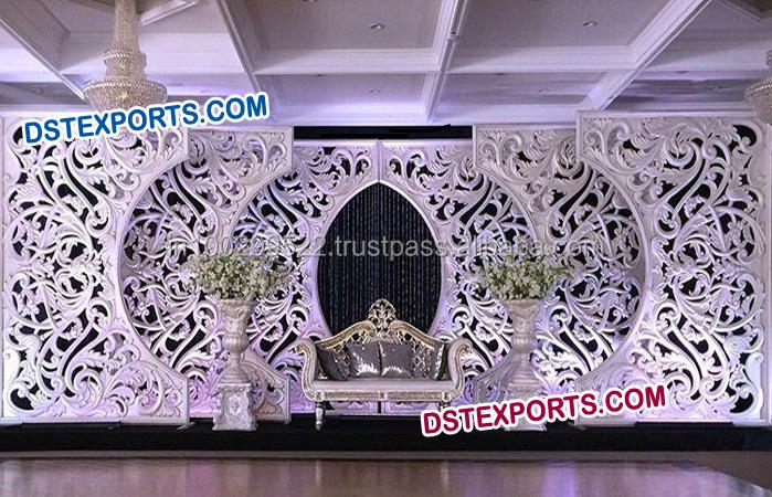 แผงไฟเบอร์ขนาดใหญ่เวทีแต่งงาน/อังกฤษจัดงานแต่งงานการออกแบบใหม่แผงฉากหลัง/แกะสลักหนักแผงฉากหลังที่สวยงาม
