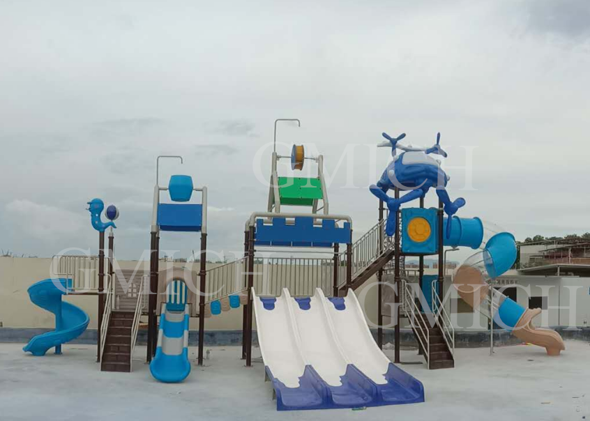 สไลเดอร์สระว่ายน้ำไฟเบอร์กลาสขนาดใหญ่พร้อมของเล่นฉีดน้ำสำหรับทั้งเด็กและผู้ใหญ่