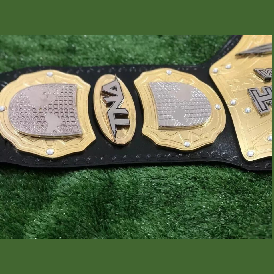 เข็มขัดแชมป์สีเขียวขนาดใหญ่แผ่นโลหะผสมสังกะสี/ทองเหลืองขนาด4มม. เข็มขัดมวยปล้ำหนังแท้