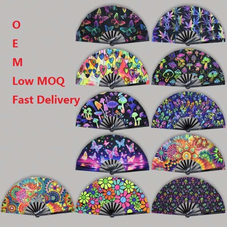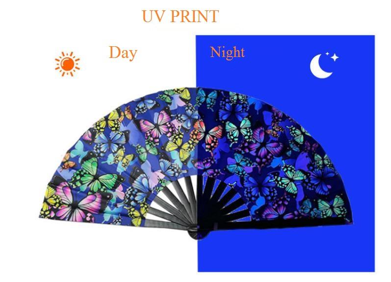 พัดมือไม้ไผ่กังฟูขนาดใหญ่ เรืองแสงภายใต้แสง UV