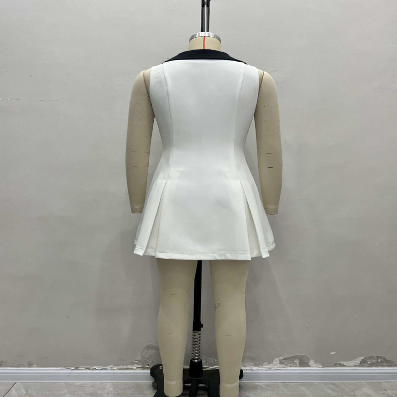 เสื้อครอปเอวเข้ารูปทรงลำลองแบบไม่มีแขน แต่งกระดุมโลหะขนาดใหญ่ ให้ความรู้สึกหรูหรา