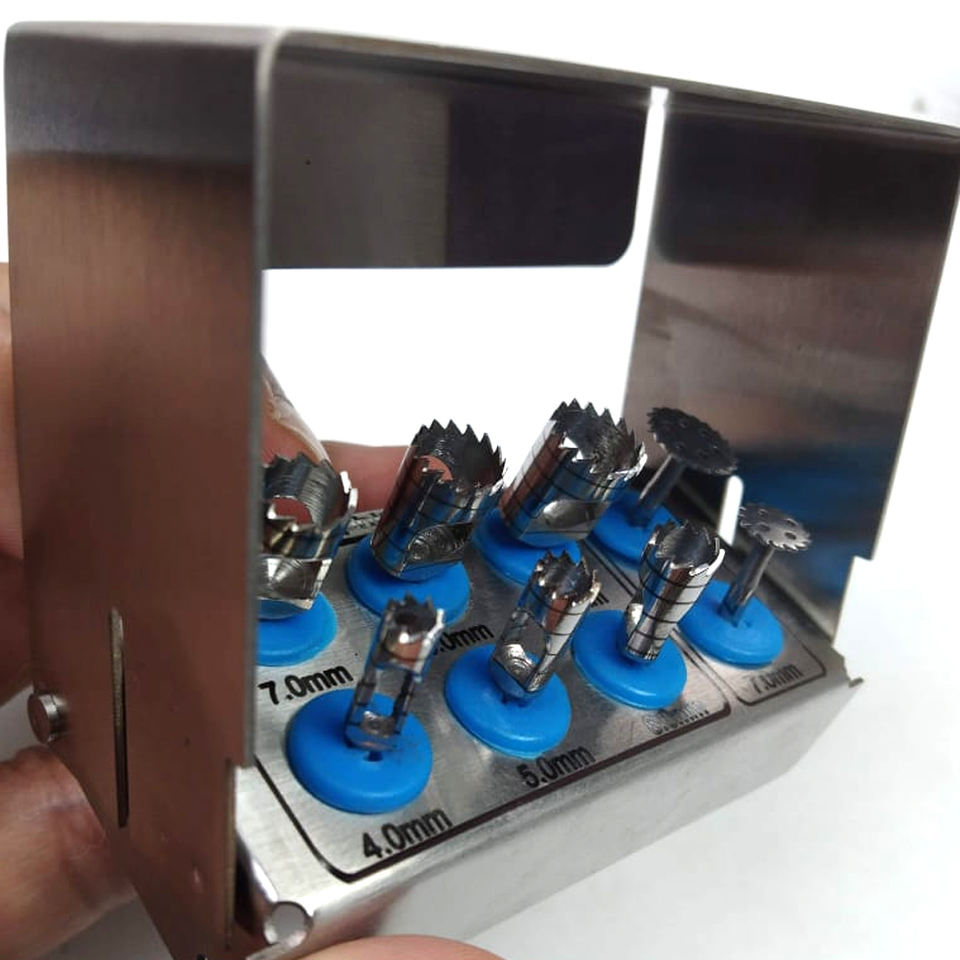 ชุดเครื่องมือเจาะฟันแบบแมนนวลสำหรับการผ่าตัดฝังรากเทียม พร้อมบล็อกบอร์ดและเลื่อยเจาะฟรี ทำจากสแตนเลส