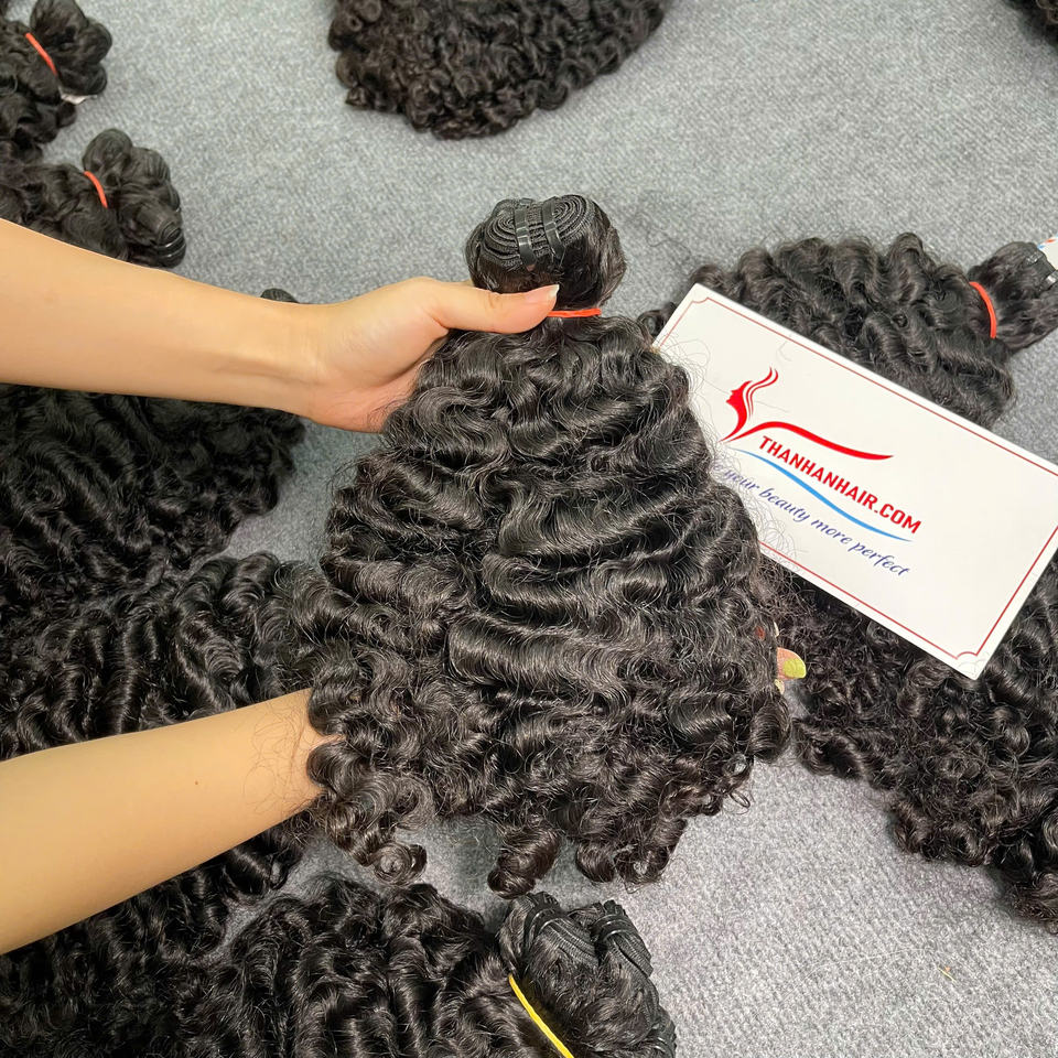 ผมต่อทำจากผ้าพม่าสำหรับต่อผมลอนผมสีดำธรรมชาติพร้อมส่ง