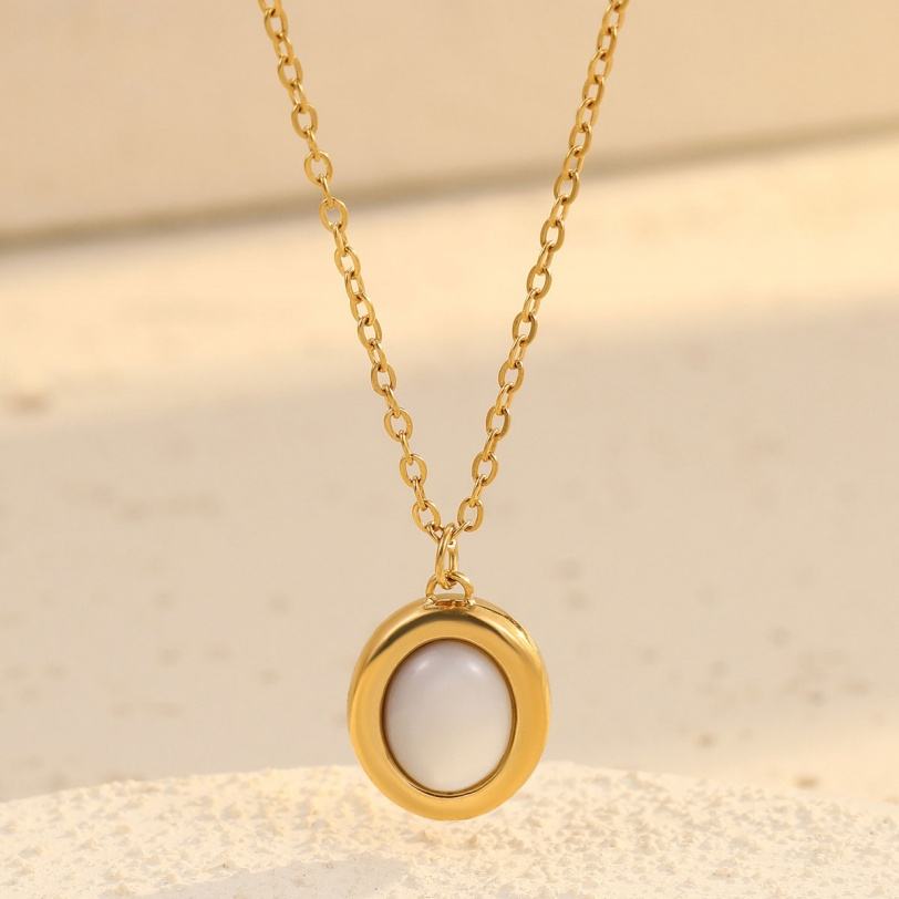 สร้อยคอแฟชั่นสแตนเลสทรงเปลือกหอยสีขาวรูปไข่ ดีไซน์สวยหรูสำหรับผู้หญิง เหมาะสำหรับวันหยุดพักผ่อนริมชายหาดช่วงฤดูร้อน ได้รับความนิยมอย่างมาก