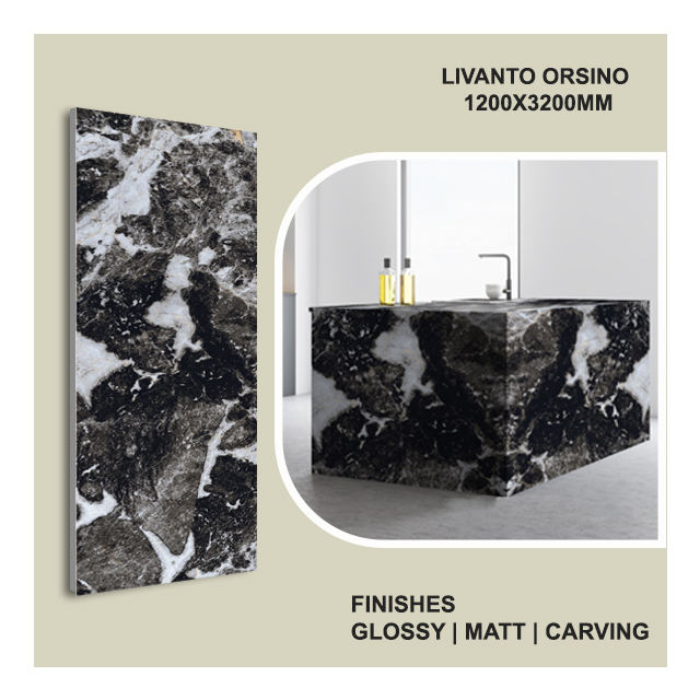 กระเบื้องพอร์ซเลนขนาดใหญ่ขนาด1200*3200มม. แผ่นหินอ่อนเคลือบเงาสำหรับบ้านและสำนักงาน