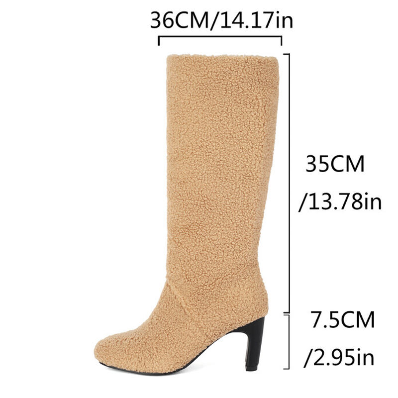รองเท้าบูทขนสัตว์ทรงสูงถึงเข่าสำหรับผู้หญิง ไซส์ใหญ่ 44 ส้นหนาปานกลาง รองเท้าฤดูหนาว หัวเหลี่ยม แบบยาว