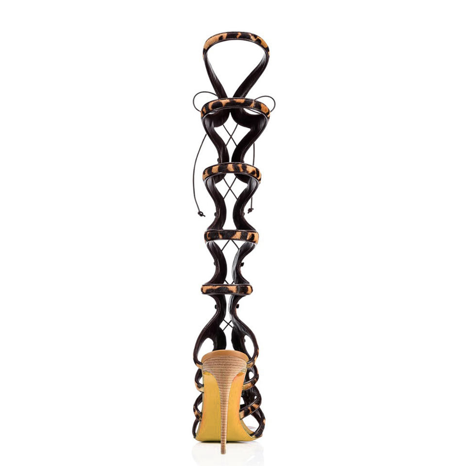 รองเท้าบูทหุ้มข้อสูงแบบผูกเชือก ไซส์ใหญ่ 46 ลายเสือดาว ส้นสูงทรงเพรียว แบบเปิดข้าง เหมาะสำหรับฤดูร้อน รองเท้าทรงกว้าง