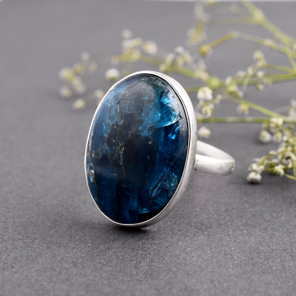 เครื่องประดับแหวนพลอย Apatite ธรรมชาติเงินแท้ 925 ขนาดใหญ่