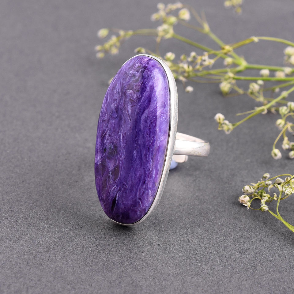 เครื่องประดับแหวนพลอยเชโรไลต์ธรรมชาติเงินแท้ 925 ขนาดใหญ่