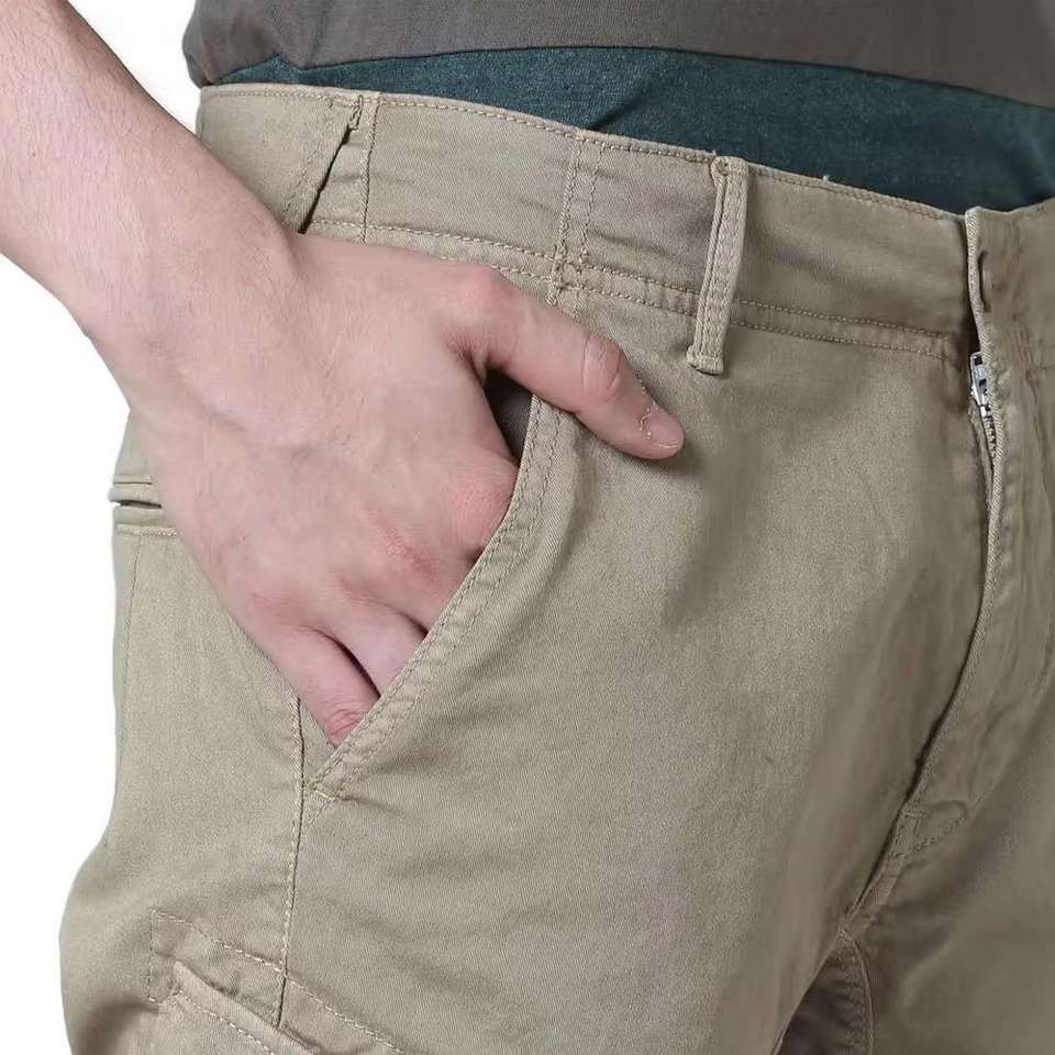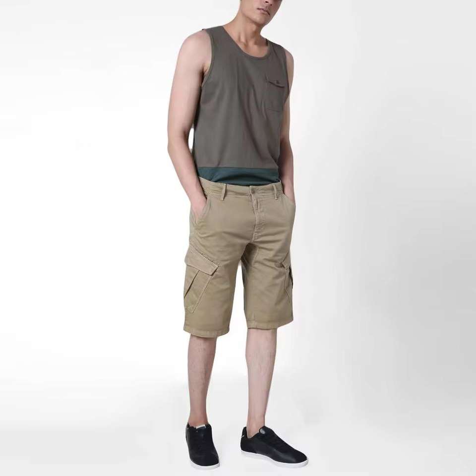 กางเกงขาสั้นผู้ชายยาวถึงเข่ามีกระเป๋าหลายกระเป๋า