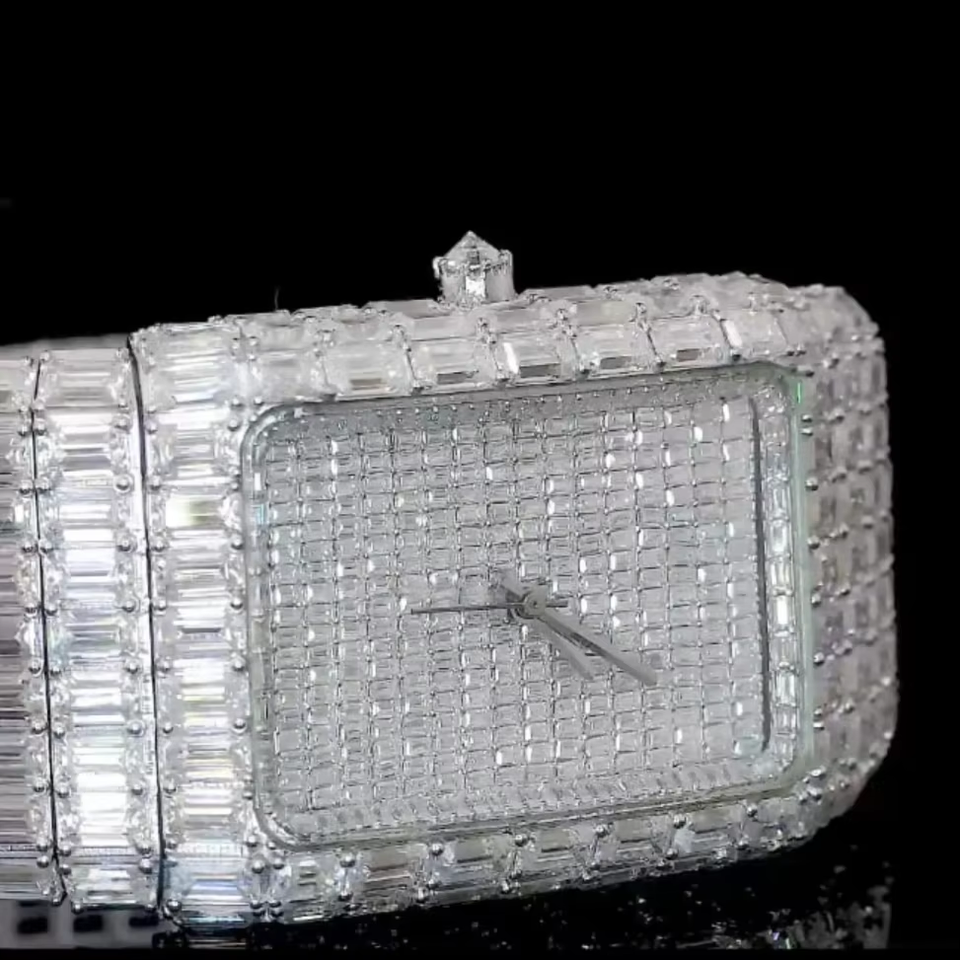 Big Size Fully Iced VVS Moissanite Diamond Watch Stainless Steel ETA Automatic Square Men's Luxury Hip Hop Fashion Glass