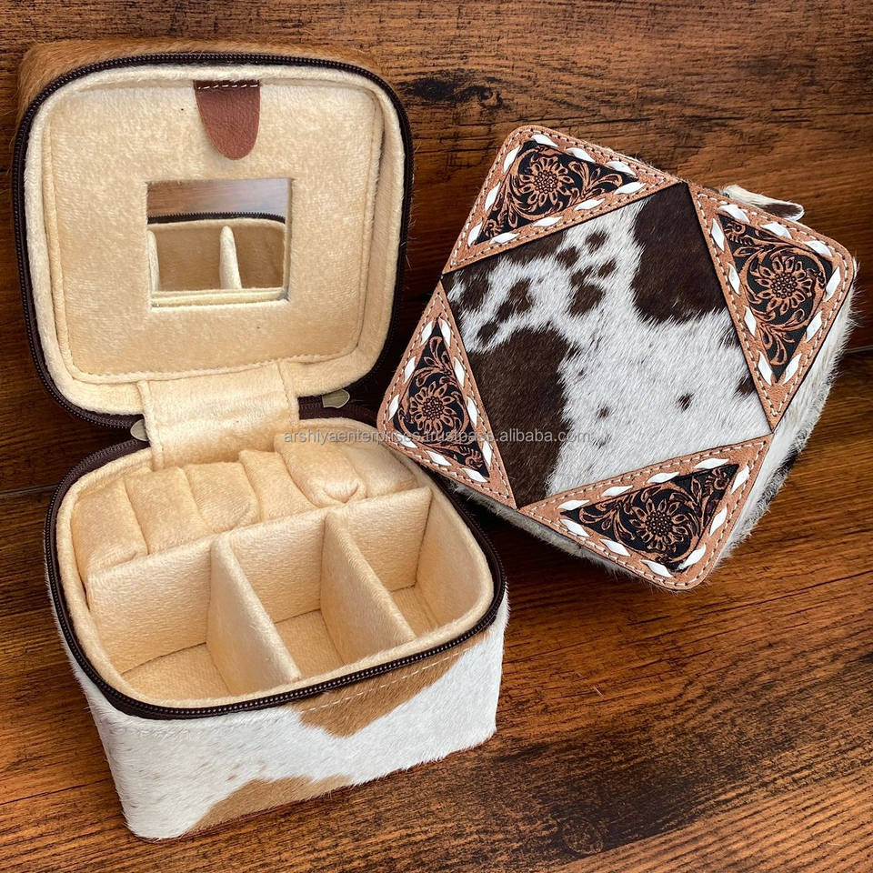 คอลเลกชันเครื่องประดับขนาดใหญ่กล่องหนังแบบมีซิปกล่องเครื่องประดับกระจกต่างหูหนังวัวกล่องจัดระเบียบเครื่องประดับ