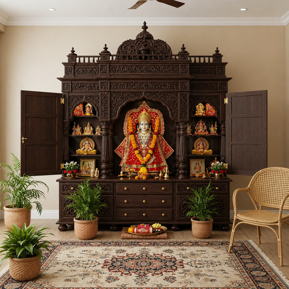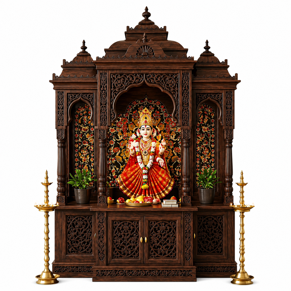 Big Size Premium Hand Carved Teak Mandir Unit