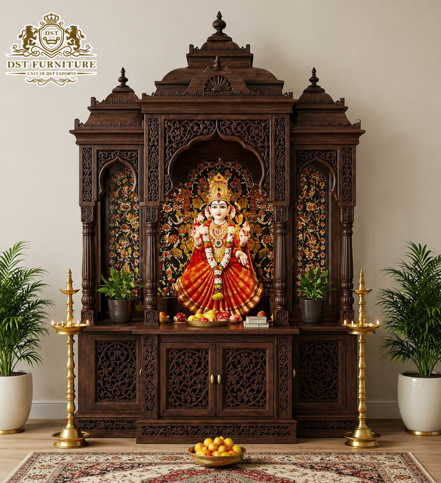 ชุดห้องสวดมนต์ไม้สักแกะสลักด้วยมือขนาดใหญ่ พรีเมียม DST Exports สไตล์ดั้งเดิม/ทันสมัย น้ำหนักเบา ทนทาน เฟอร์นิเจอร์บ้าน สีน้ำตาล UK