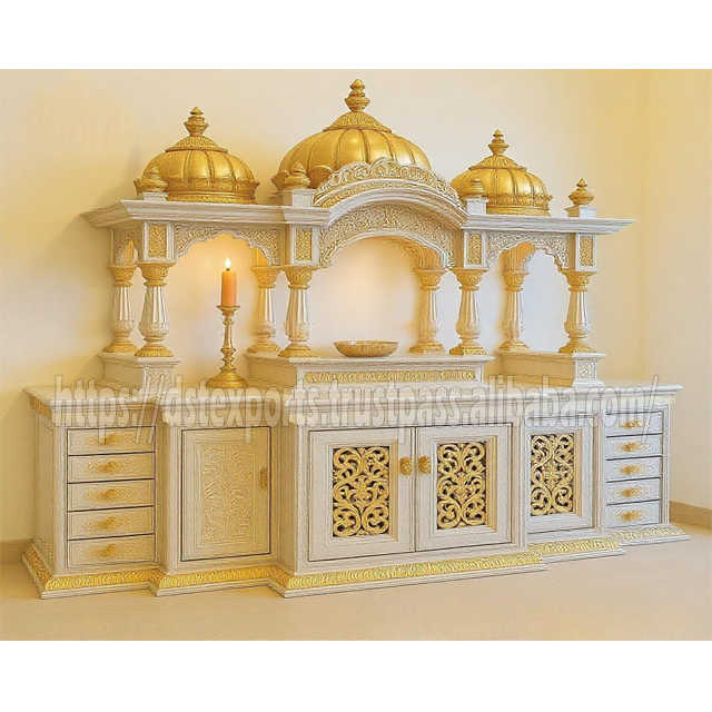 วัดขนาดใหญ่สีขาวและสีทองพร้อมตู้เก็บของ DST Exports วัดพูจาขนาดใหญ่แบบกำหนดเอง วัดไม้สักที่มีอายุการใช้งานยาวนาน สหรัฐอเมริกา