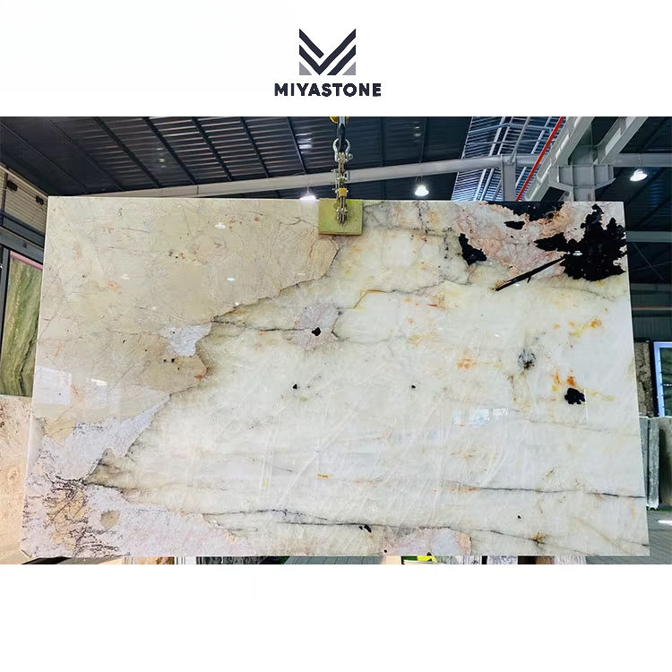 แผ่นหินอ่อนอ่อน ABS 125ตกแต่ง3619E การตกแต่งที่ทันสมัยแคลไซต์ธรรมชาติสำหรับวิลล่าในร่มพื้นผิวขัดมัน