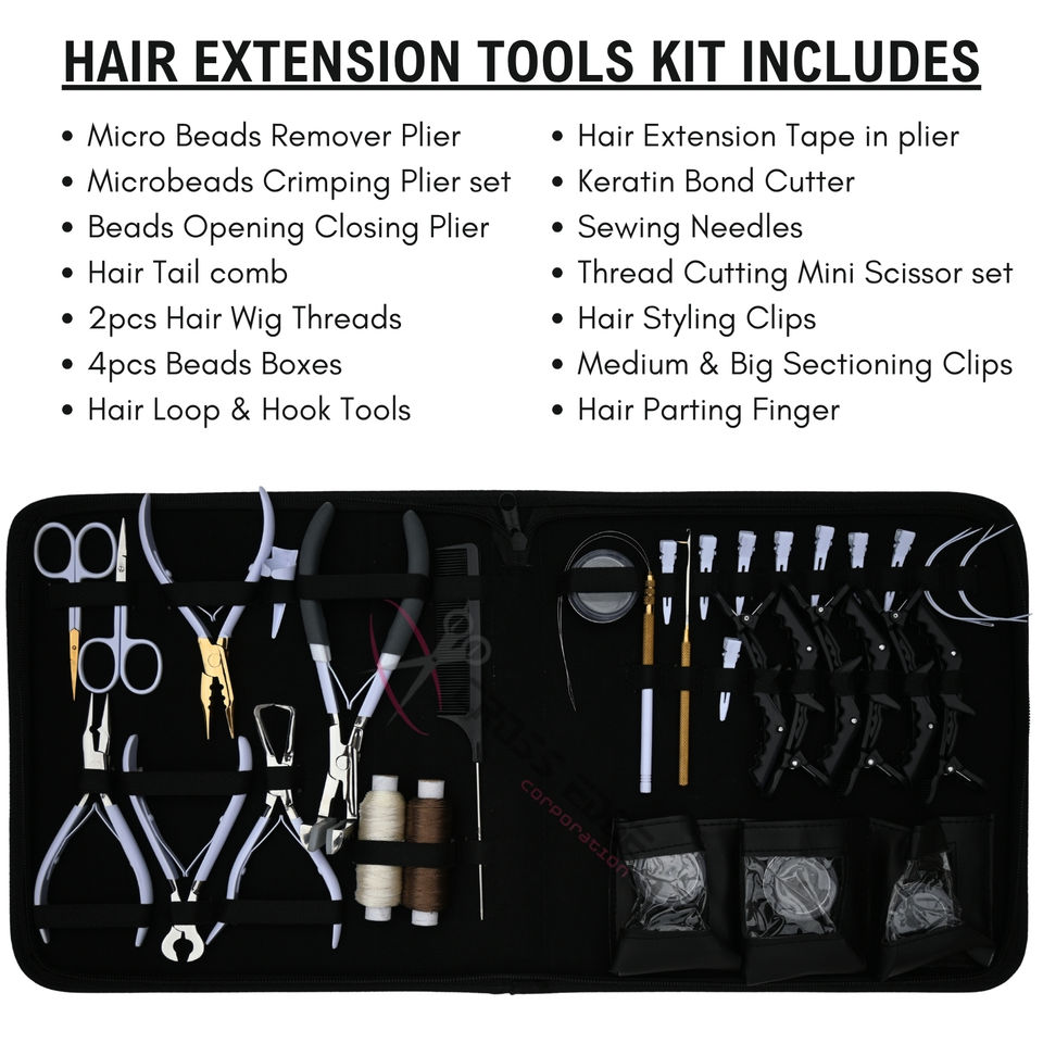 ชุดเครื่องมือต่อผม พร้อมคีมต่อผมเทปและคีมต่อผมแบบลูกปัด