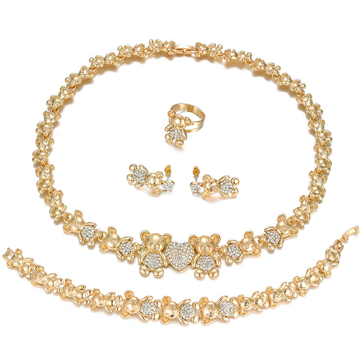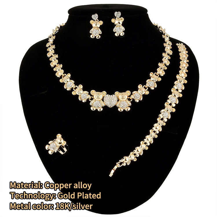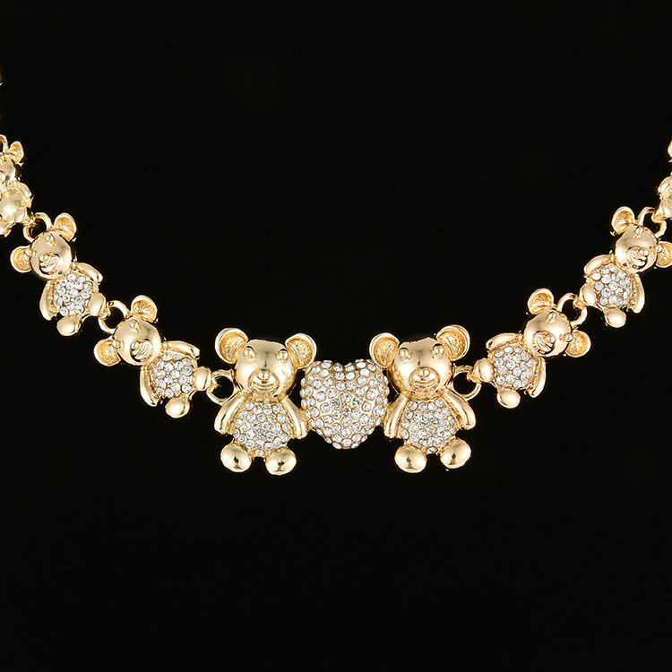ชุดเครื่องประดับสร้อยคอหมีเท็ดดี้ขนาดใหญ่ ฉันรักคุณ กอดและจูบ ชุบทอง 18k แฟชั่น Xo รุ่นล่าสุด ชุดเครื่องประดับงานแต่งงาน