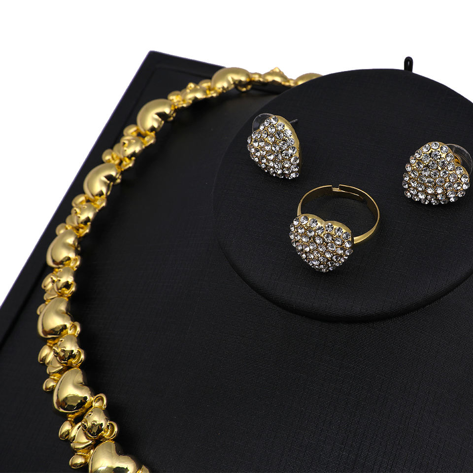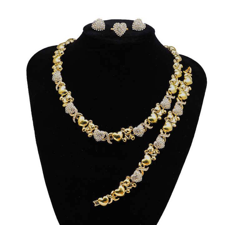 ชุดสร้อยคอหมีเท็ดดี้ขนาดใหญ่ ฉันรักคุณ กอดและจูบ ชุดเครื่องประดับทองดูไบ 18K ชุดเครื่องประดับแฟชั่นสำหรับงานปาร์ตี้ เครื่องประดับแอลจีเรีย