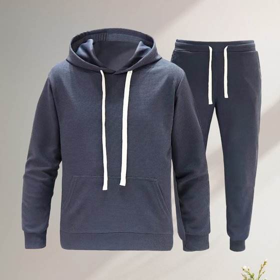 ชุดวอร์มสำหรับผู้ชายขนาดใหญ่และสูง2ชิ้นชุดมีฮู้ดผ้าฟลีซชุดวอร์มลำลองชุดวิ่งชุดกีฬากลางแจ้งสีดำ L