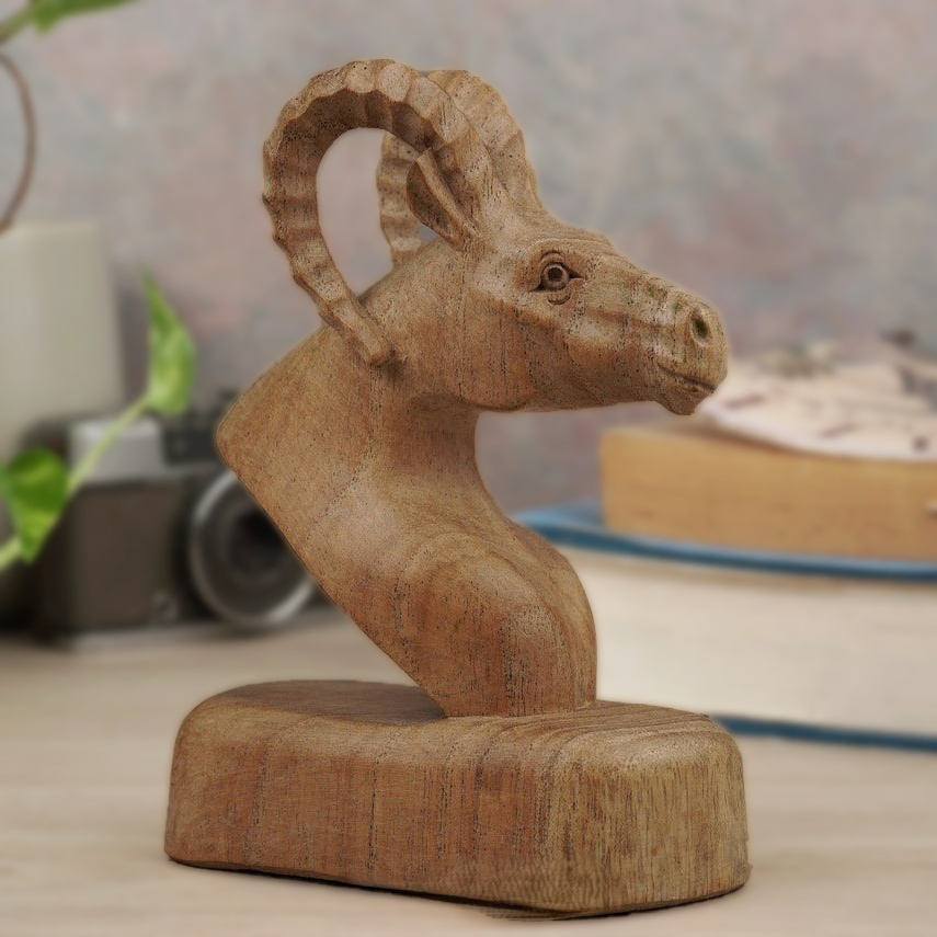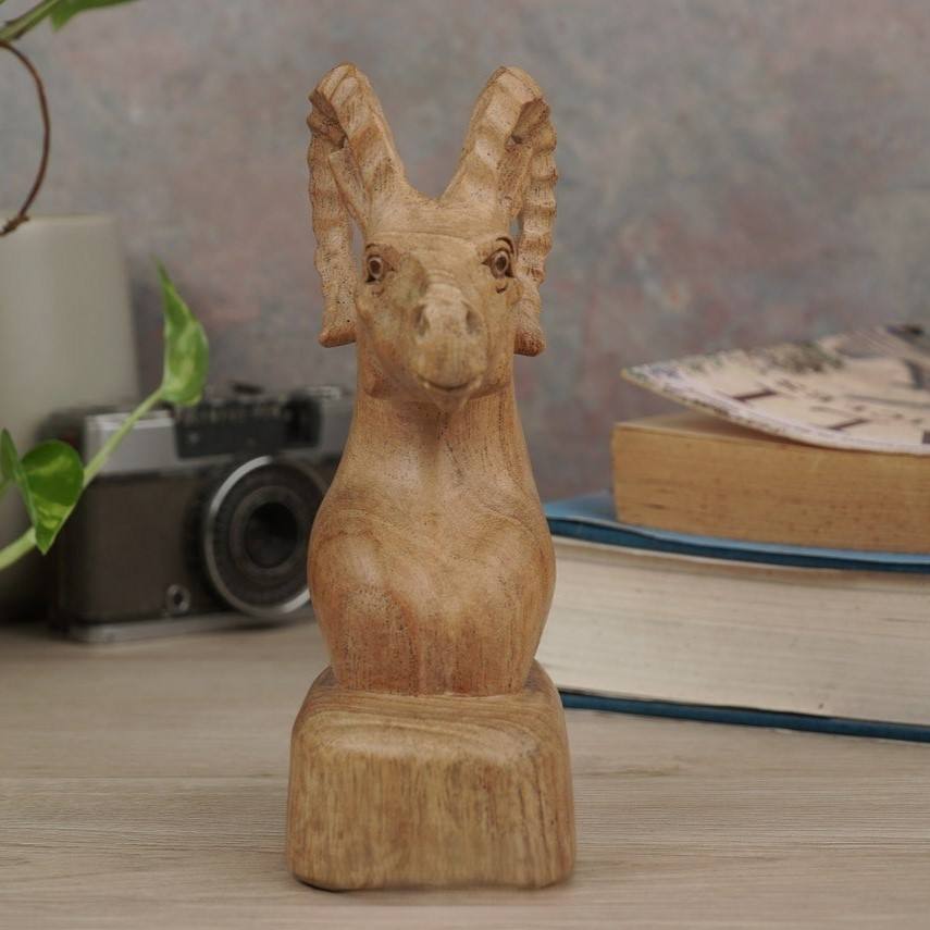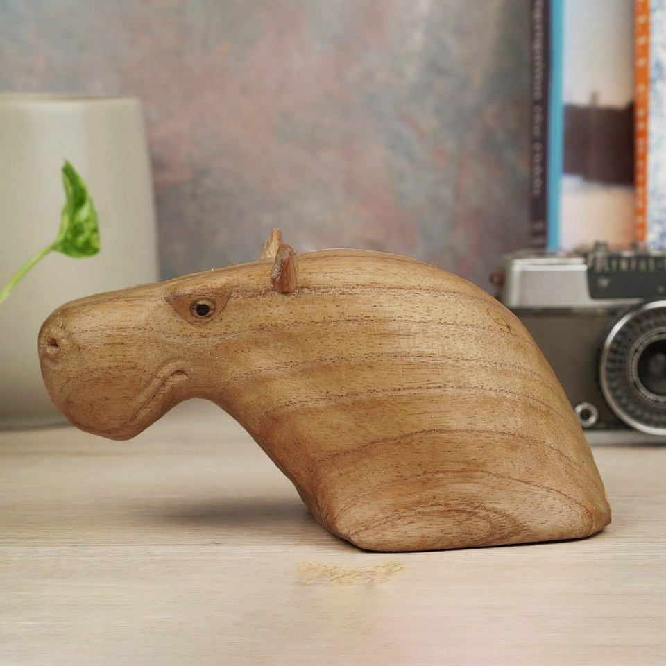 รูปปั้นไม้แกะสลักรูปสัตว์หัวสัตว์ใหญ่รูปปั้นไม้สำหรับสะสมหน้า3D