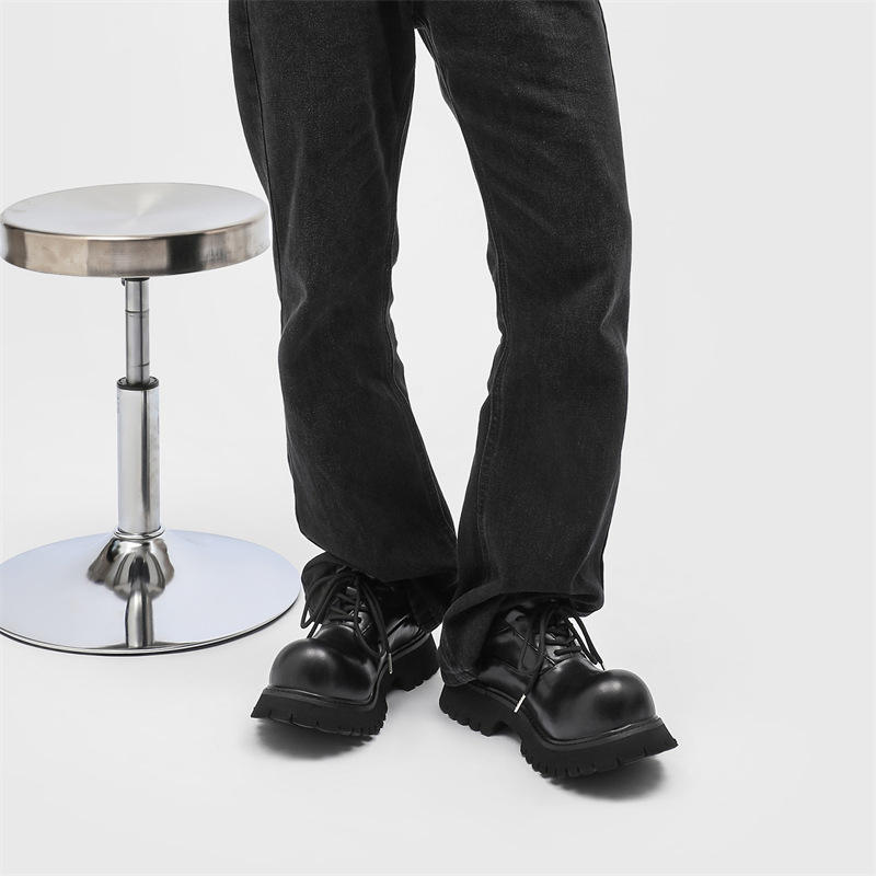 รองเท้าเดอร์บี้หัวโตพื้นหนา - รองเท้าหนังลำลองสำหรับผู้ชายและผู้หญิง - รองเท้าเดินมอเตอร์ไซค์หนังแท้