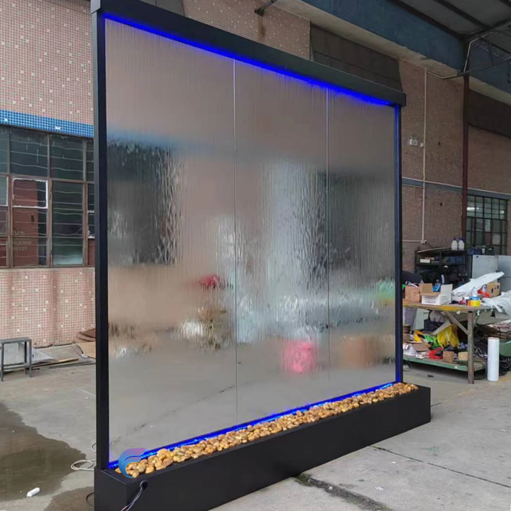 น้ำพุตกแต่งสวนขนาดใหญ่ ทำจากกระจกใส พร้อมฐานสแตนเลสแบบตั้งพื้น