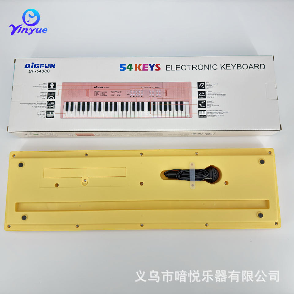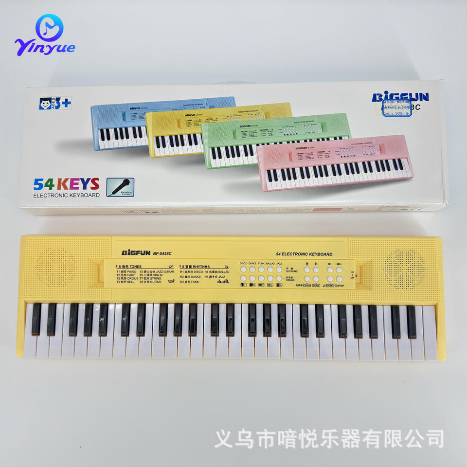 บิ๊กฟันคีย์บอร์ดอิเล็กทรอนิกส์ 54 คีย์พร้อมไมโครโฟนสำหรับเด็กการเรียนรู้ดนตรีของเล่นเครื่องดนตรีสีเหลืองอ่อนสำหรับทุกเพศ