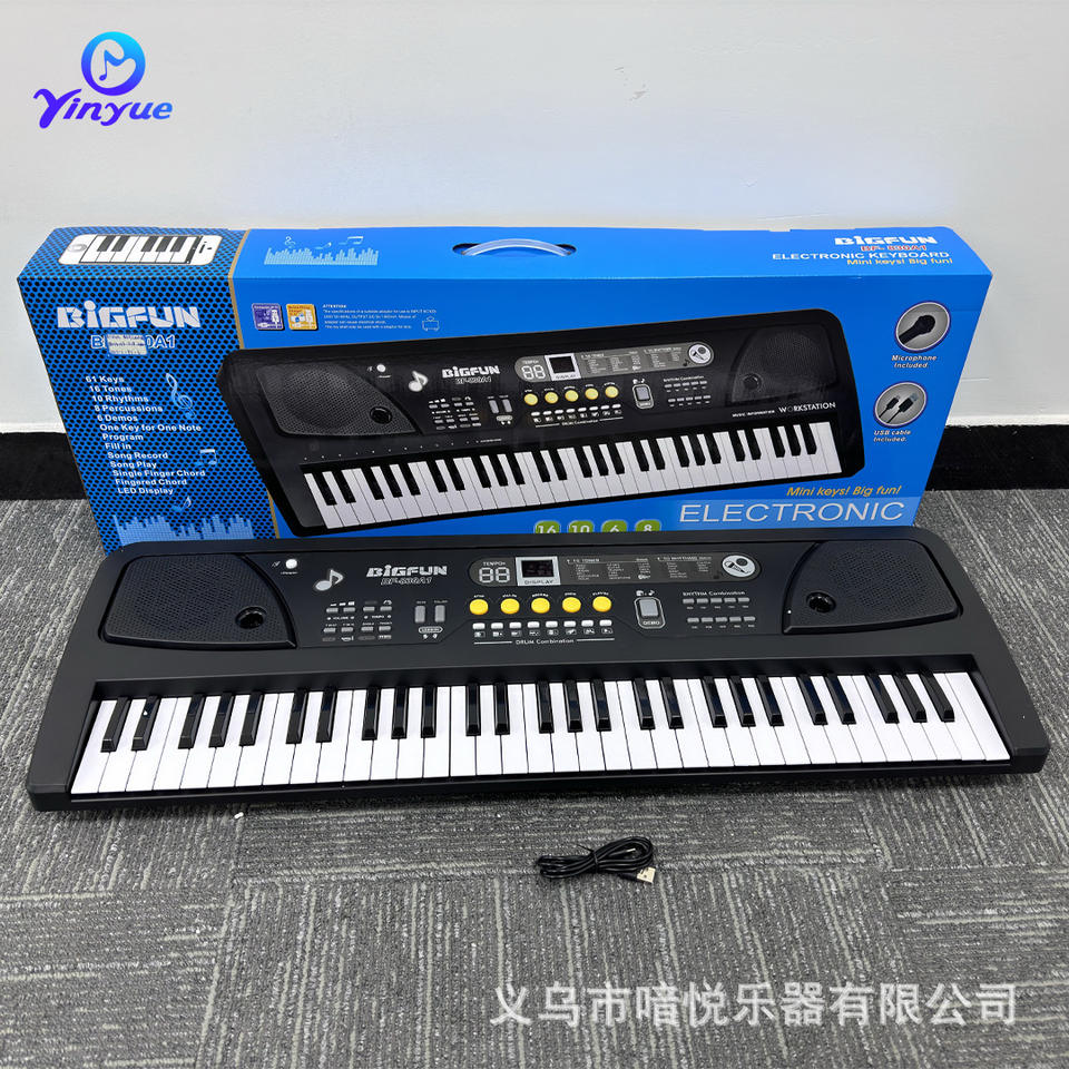 บิ๊กฟันคีย์บอร์ดอิเล็กทรอนิกส์ 61 คีย์พร้อมไมโครโฟนและสายยูเอสบีสำหรับเด็กของเล่นเพื่อการศึกษาเครื่องดนตรี
