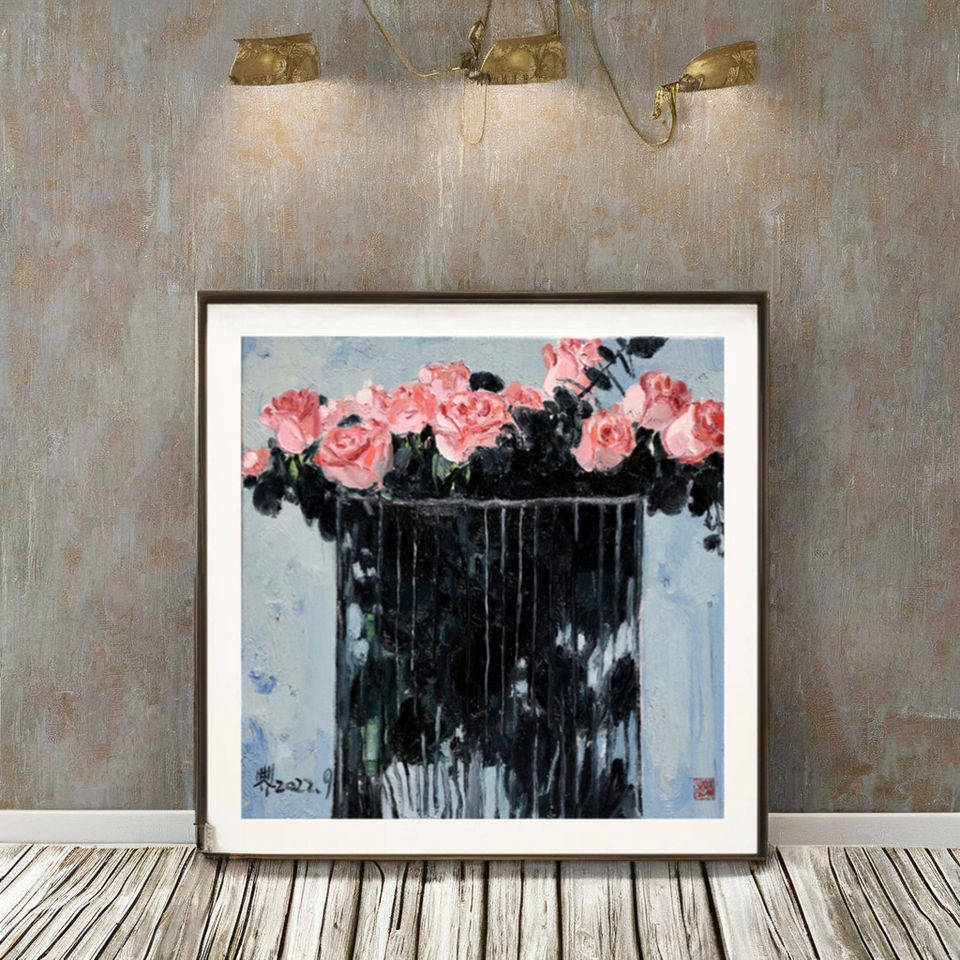 Bigimage ภาพวาดศิลปะพื้นผิวแบบ3D 60x60ศิลปะกุหลาบลิขสิทธิ์งานศิลปะแกลเลอรีคอลเลกชันการประมูลที่มีจำนวนจำกัดของตกแต่งโรงแรม