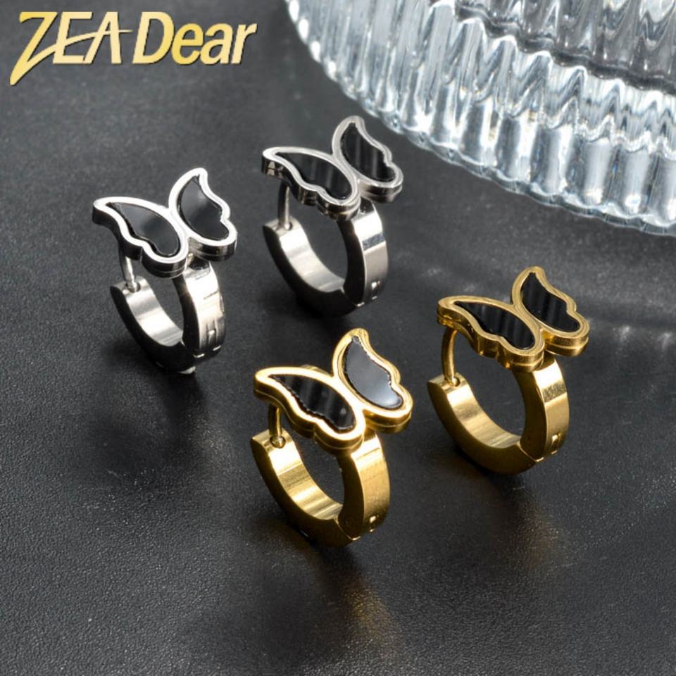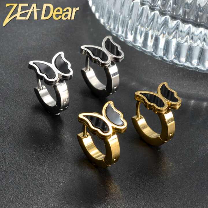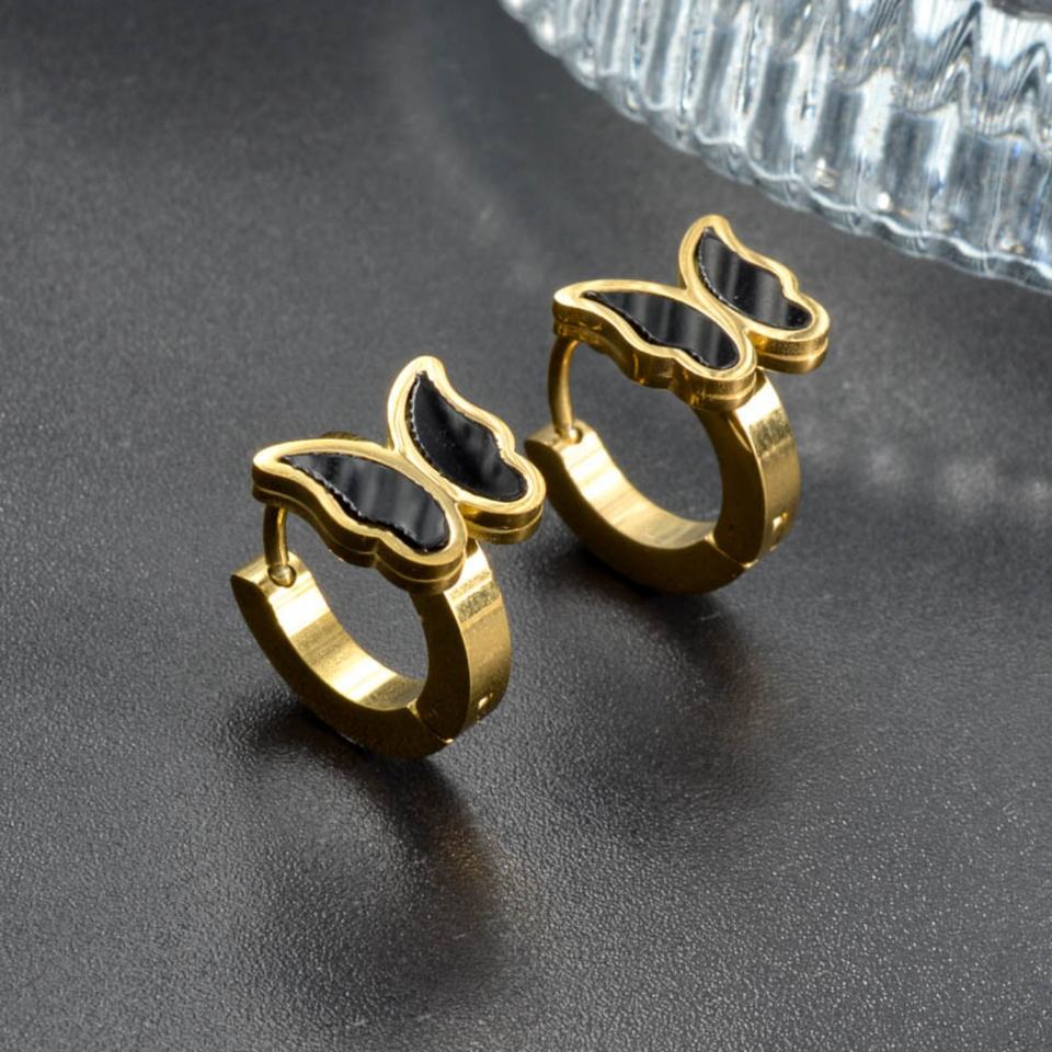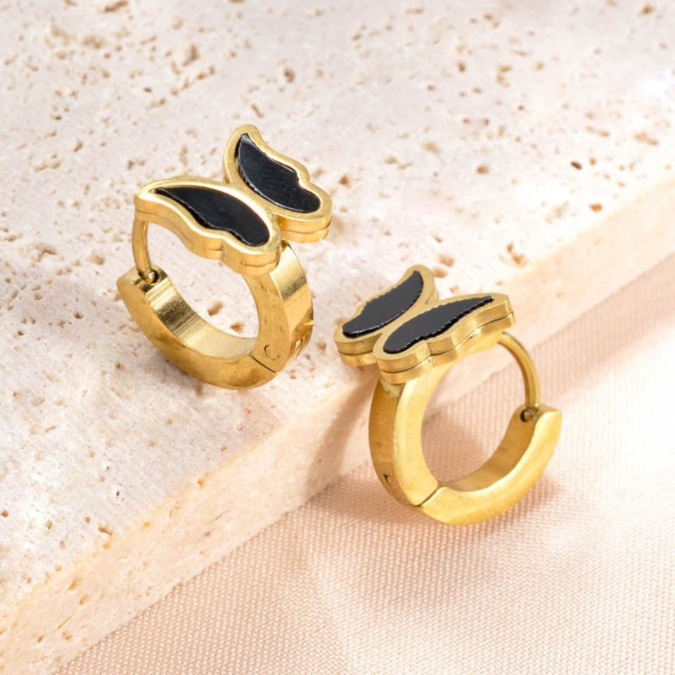 ต่างหูห่วงผีเสื้อสแตนเลสชุบทอง 18k