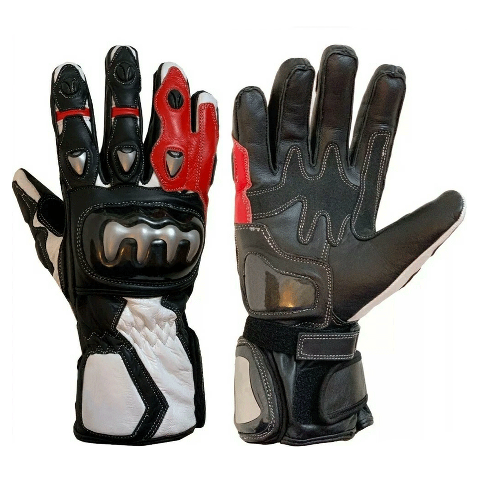 ถุงมือขี่จักรยานหนังแท้ CE หุ้มเกราะหุ้มเกราะโปรถุงมือมอเตอร์ไซด์แข่งรถมอเตอร์ไซค์ถุงมือแข่งรถสีแดง/สีดำสำหรับผู้ชาย