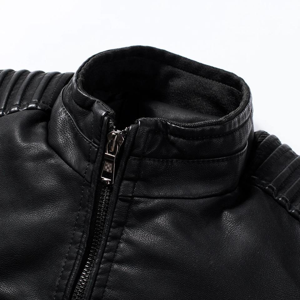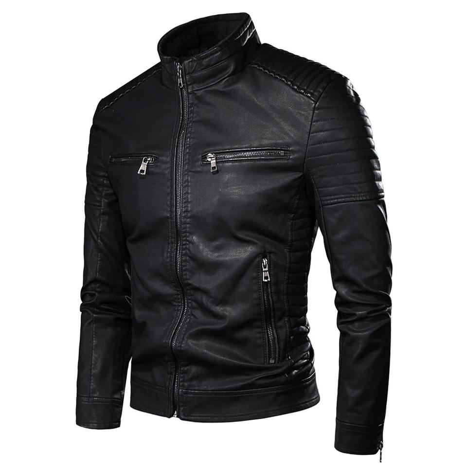 แจ็กเก็ตหนังเย็บปักลายสำหรับนักขี่มอเตอร์ไซค์แจ็กเก็ตหนังคอปกตั้งสำหรับผู้ขับขี่รถจักรยานยนต์สไตล์ไฮสตรีท