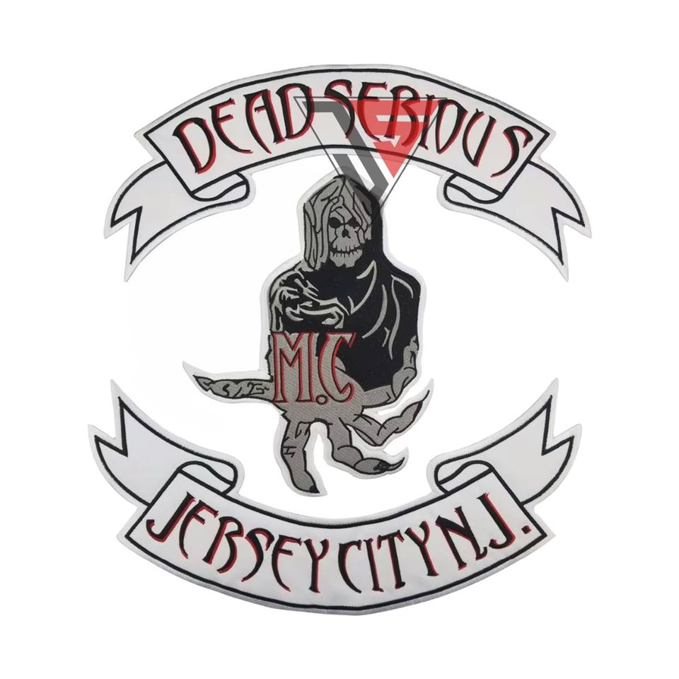 เสื้อกั๊กรถจักรยานยนต์นักขี่จักรยานเสื้อเจอร์ซีย์เมือง NJ ที่ตายแล้วชุดผ้าปะติด3ชิ้นสำหรับแจ็คเก็ตชุดปักตามสั่ง