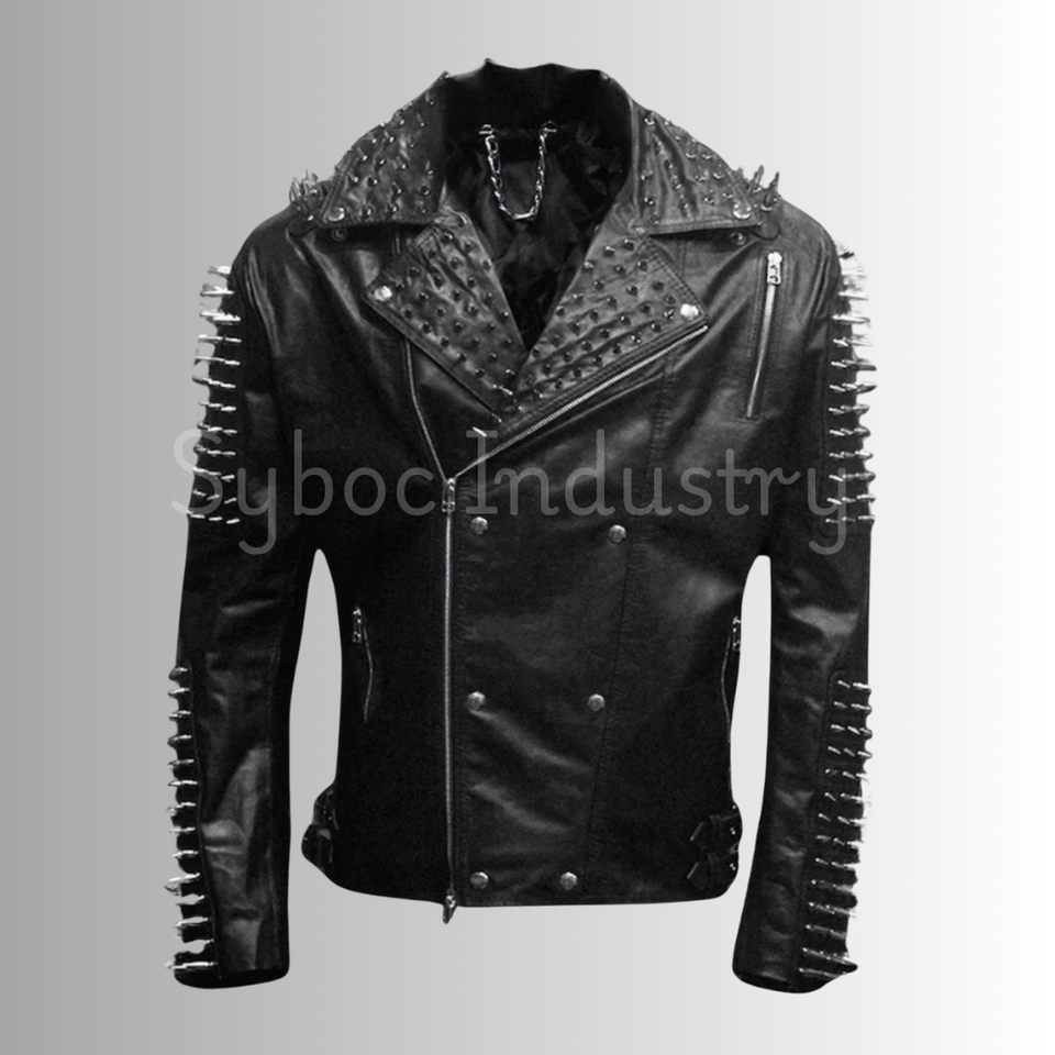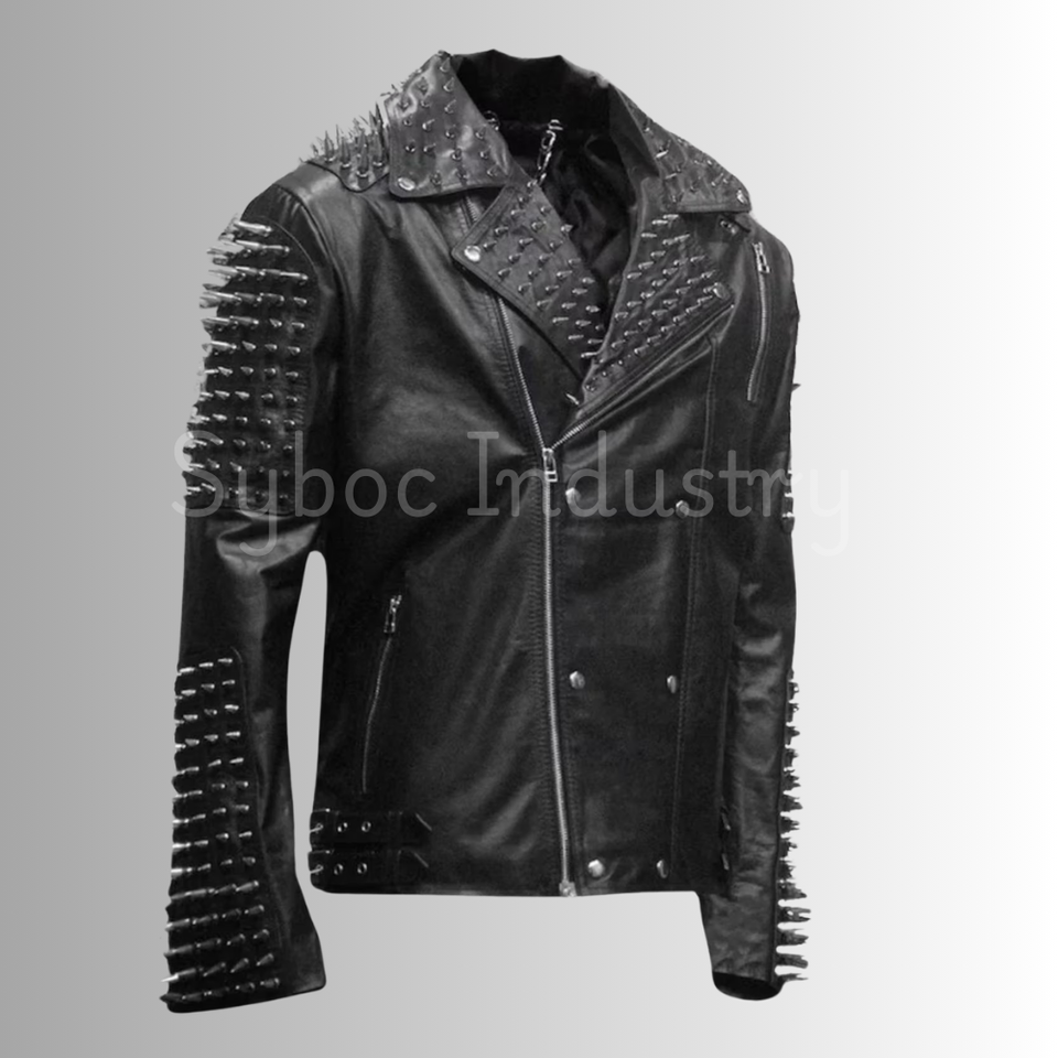 เสื้อแจ็คเก็ตสไตล์ไบค์เกอร์พังก์สำหรับฤดูหนาว ปกพับได้ สไตล์ลำลอง ประดับหมุดหนัง ซิปหนัง ผ้าทอแบบไม่ถักทอ บริการ OEM