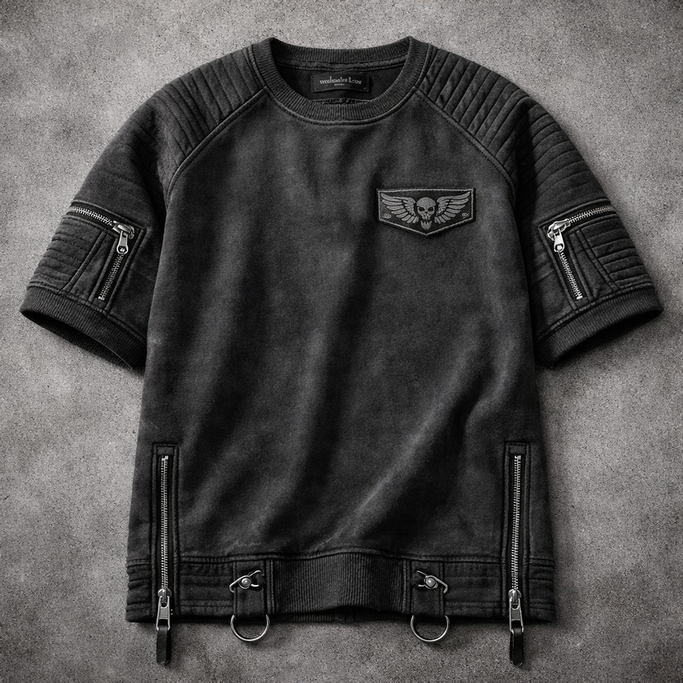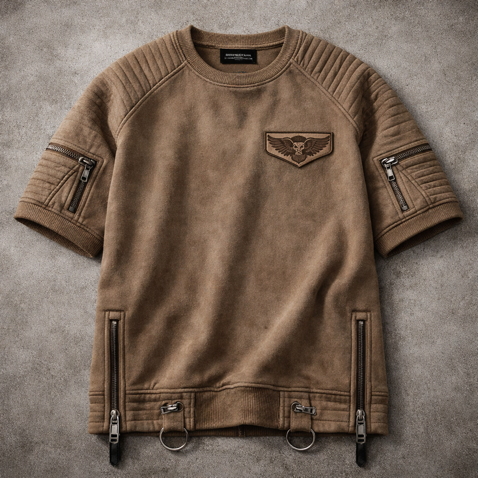 เสื้อยืดผู้ชายทรงสปอร์ต แบรนด์ Biker Zipper ผ้าแคนวาสคอตตอน 100% ย้อมเส้นด้าย เป็นมิตรต่อสิ่งแวดล้อม ระบายอากาศด้านหน้าได้ดี น้ำหนักผ้าหนา GSM ตัดเย็บแบบไหล่ตกตามสั่ง