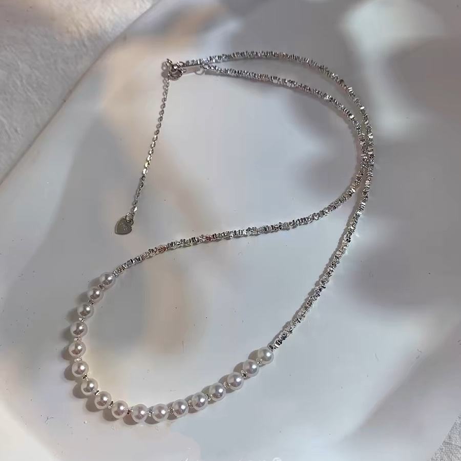 Biling High Grade Elegant Broken Silver Necklace with Starry Smiles Natural Pearls & Clavicle Chain Fine Chains Necklaces