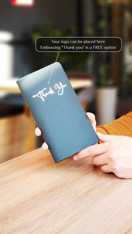 LBH-0025ใส่ธนบัตรหนังแท้สำหรับเช็คบิลมีโลโก้ร้านอาหารสามารถกำหนดเองได้