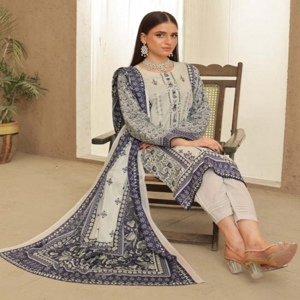 Hameed VOL Maya ชุดสูทสามชิ้นสำหรับผู้หญิงชุดกระโปรงแมกซี่ปักลายสำหรับสนามหญ้าปากีสถาน