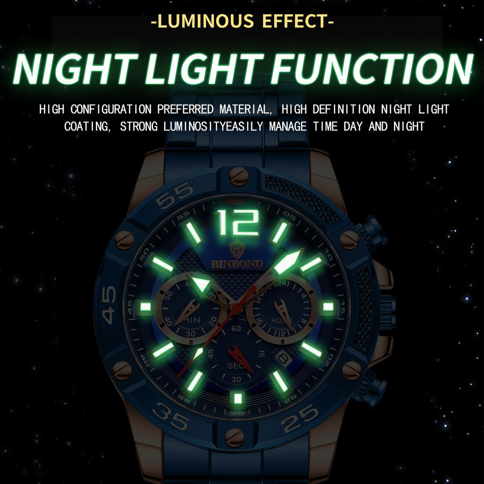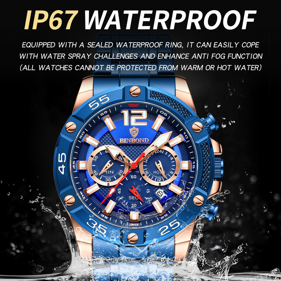 นาฬิกาข้อมือผู้ชาย Binbond 9798 สีน้ำเงินเข้ม สแตนเลสสตีล ควอตซ์ กันน้ำ แฟชั่นธุรกิจ มัลติฟังก์ชั่น ขายส่ง ราคาถูกกว่า