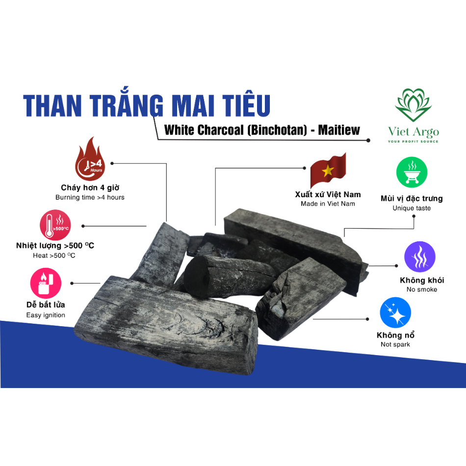 ถ่านอูคาลิปตัสเวียท อาร์โก บินชอตัน แบบแท่ง ให้ความร้อนสูง ติดไฟนาน สำหรับเตาบาร์บีคิวและเตาฮุคกะ