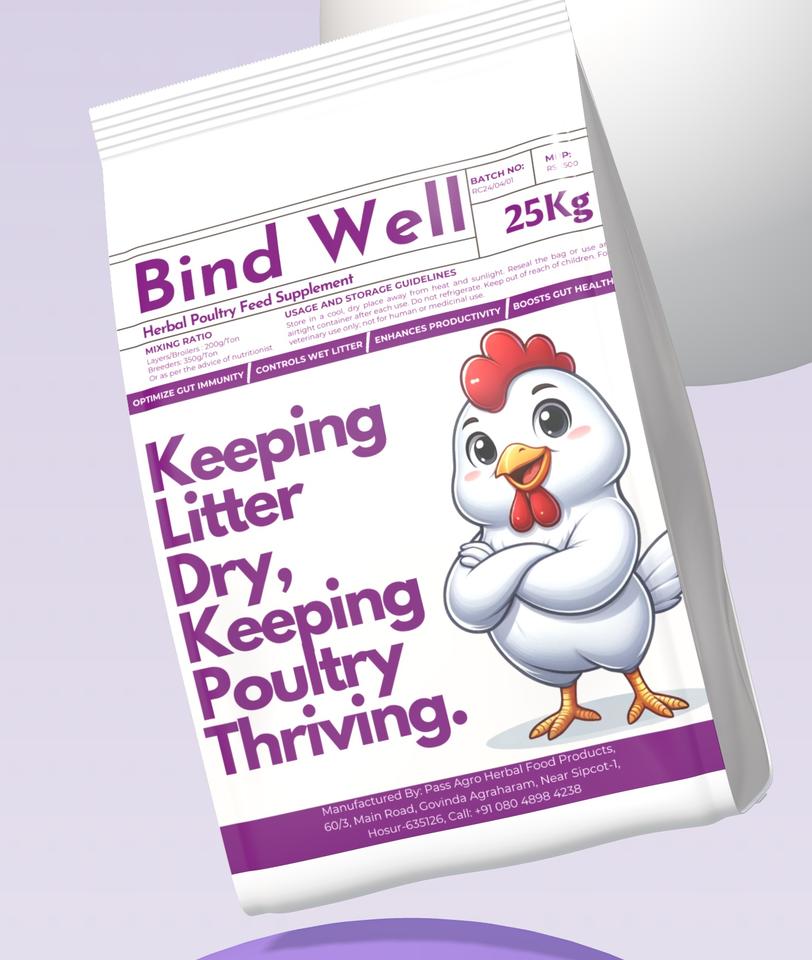 อาหารเสริมอาหารสัตว์ปีกสมุนไพร BindWell เพื่อสุขภาพลําไส้ที่ดีที่สุด ลดขยะเปียกและเพิ่มผลผลิต