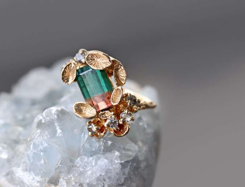 แหวนดอกไม้ทัวร์มาลีนสีชีวภาพ ได้รับการรับรองจาก IGI เครื่องประดับหรูหราสำหรับงานปาร์ตี้ พร้อมสไตล์คลาสสิกที่สง่างามและสวมใส่ได้ทุกวัน