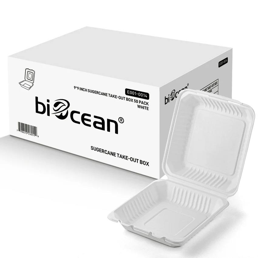Biocean ภาชนะไม้แบบมีบานพับ9 "x 9" x 3 "และนำกลับมาใช้ใหม่ได้พร้อมที่จับ