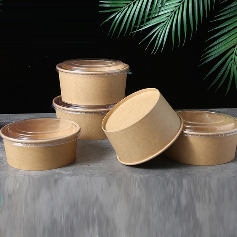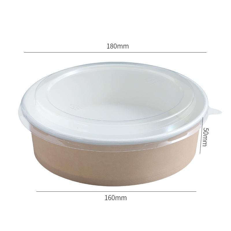 ชามสลัดตื้นทรงกลมทำจากกระดาษคราฟท์กันรั่วแบบย่อยสลายได้พร้อมฝาสำหรับใส่อาหาร