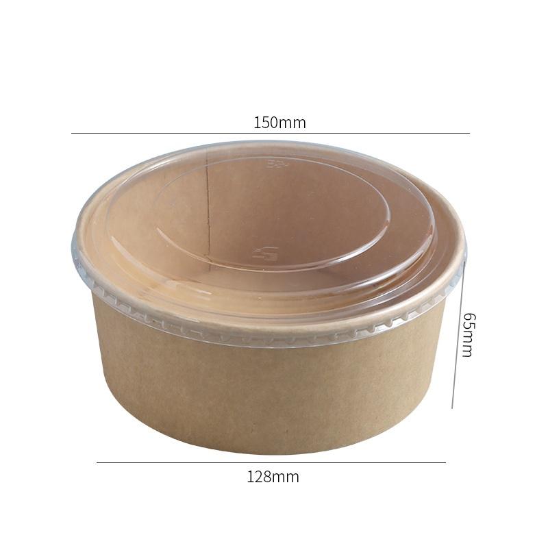 ชามสลัดตื้นทรงกลมทำจากกระดาษคราฟท์กันรั่วแบบย่อยสลายได้พร้อมฝาสำหรับใส่อาหาร