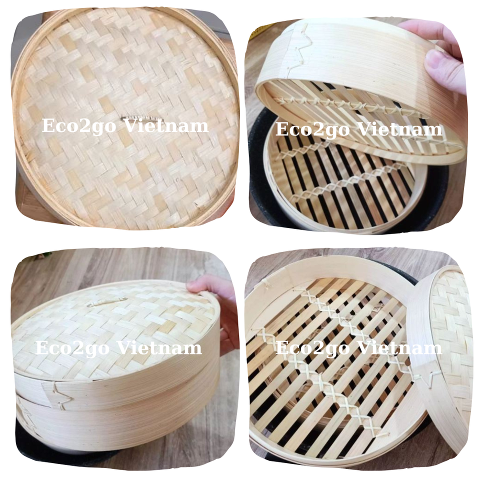ตะกร้าติ่มซำขนาดเล็กทำจากไม้ไผ่ย่อยสลายได้ Eco2go สำหรับทำอาหารอบไอน้ำที่ผลิตในเวียดนาม