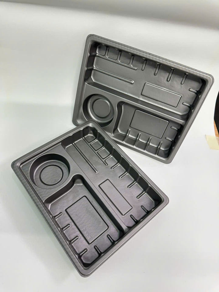 ถาดใส่แผนที่สัตว์เลี้ยงสีดำแบบย่อยสลายได้ถาดสี่เหลี่ยมแบบใช้แล้วทิ้งสำหรับเนื้อสัตว์อาหารทะเลและอาหารสด