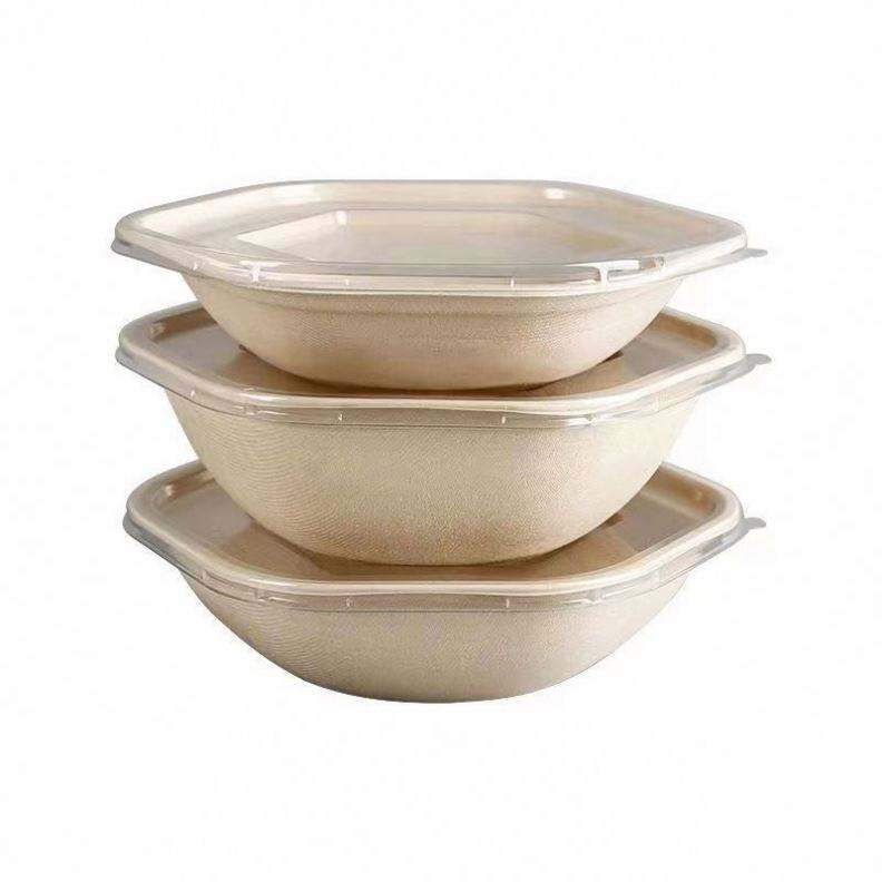 กล่องสลัดกระดาษย่อยสลายได้ เป็นมิตรกับสิ่งแวดล้อม พร้อมฝาปิด สำหรับบรรจุอาหารเพื่อสุขภาพ เหมาะสำหรับอาหารแบบนำกลับบ้านและปิกนิก